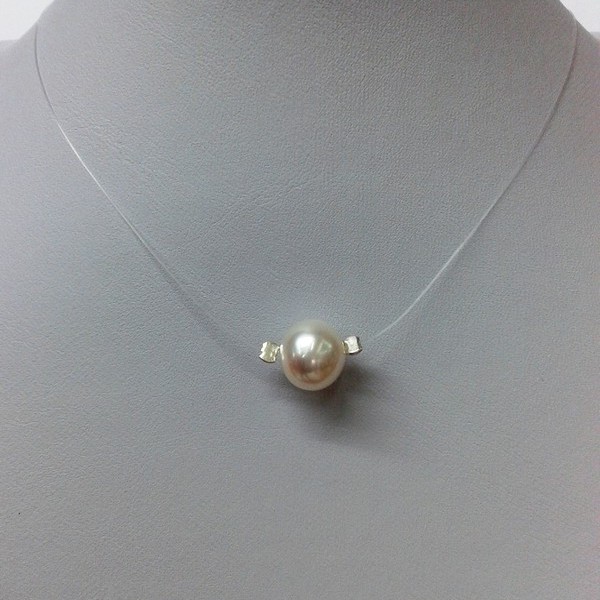 Gargantilla perla cultivada con hilo transparente