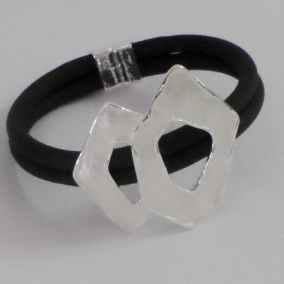 Pulsera plateada con doble cordón de caucho y cierre imán