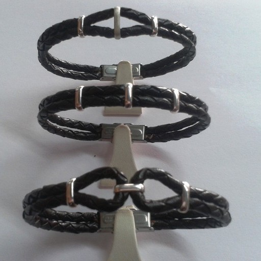 sPulsera dobles cordon trenzado marrón y 3 piezas de plata, cierre de acero. Montadas en nuestro taller