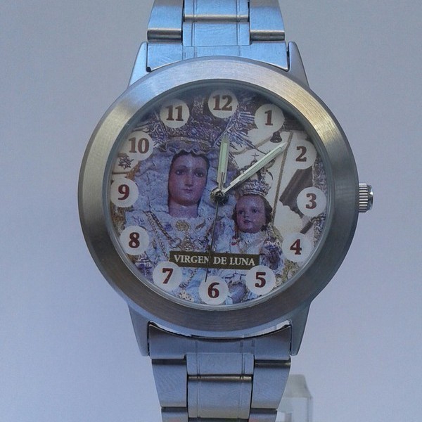 Reloj Virgen de Luna caja y pulsera en acero. Artículo sin stock y descatalogado.